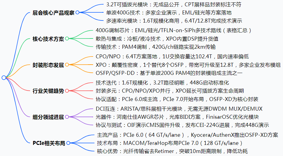Вопрос 3 (Тенденции в отрасли и прикладные аспекты): Какие основные тенденции развития отрасли оптической связи, обусловленные ростом вычислительной мощности ИИ, отражает выставка OFC 2026, и каковы технические направления адаптации оптических модулей к протоколу PCIe?