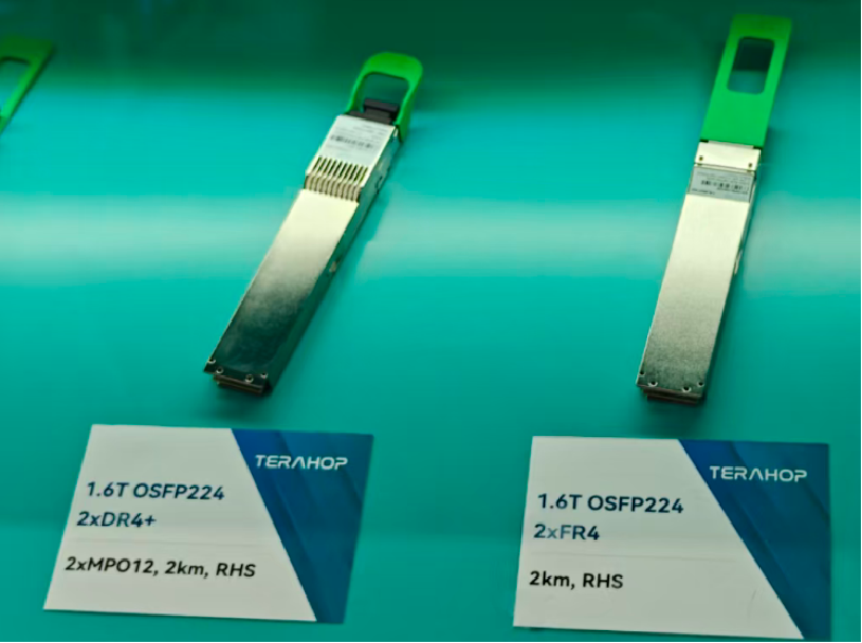 Рис. 3. Демонстрация на выставке «Solce» одноволнового многоскоростного оптического модуля 400G EML1.3: производство 1,6-Тб модулей перешло от мелкосерийного к массовому коммерческому выпуску; компания Finisar провела демонстрацию 6,4-Тб модулей NPO/CPO (32 канала по 200G) и 1600G многомодовых VCSEL-модулей NPO/CPO (16 каналов по 100G PAM4); Lumentum завершила демонстрацию модуля 1,6T DR4 OSFP, который поддерживает модернизацию до 3,2T (8×400G).