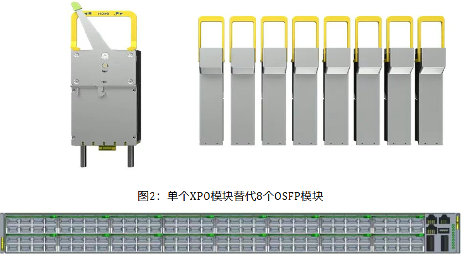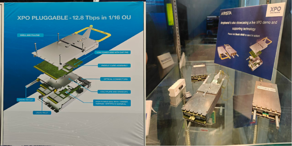 3.3 Корпус XPO: это ключевая инновация в области корпусов на данной выставке, основной особенностью которой является революционная плотность размещения: один модуль XPO может заменить восемь модулей OSFP; если модуль OSFP имеет пропускную способность 800 Гбит/с, то пропускная способность XPO достигает 6,4 Тбит/с, а пропускная способность коммутатора с 16 модулями XPO в корпусе 1U составляет 102,4 Тбит/с.