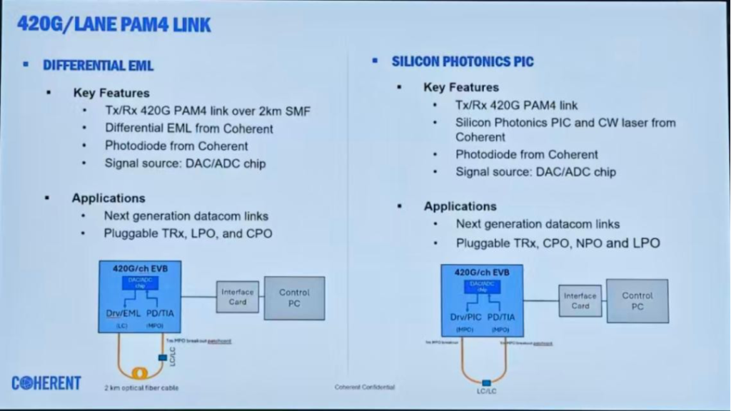 Рис. 2. Компания Finisar демонстрирует одноволновые EML-модуляторы 400G и одноволновые кремниевые оптические модуляторы 400G