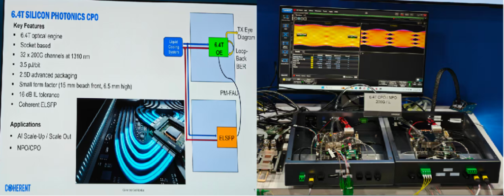 Рис. 4. Демонстрация кремниевых оптических модулей Finisar 6,4 Тбит/с NPO/CPO (200 Гбит/с на одной волне, 32 канала)