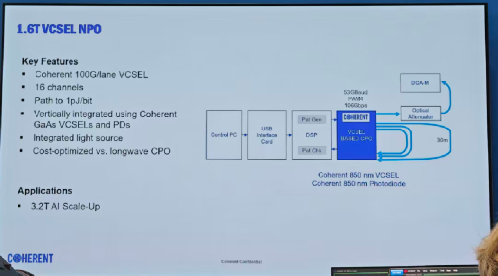 Рис. 5. Демонстрация многомодового VCSEL NPO/CPO Finisar 1600G, 16 каналов 100G PAM4 VCSEL