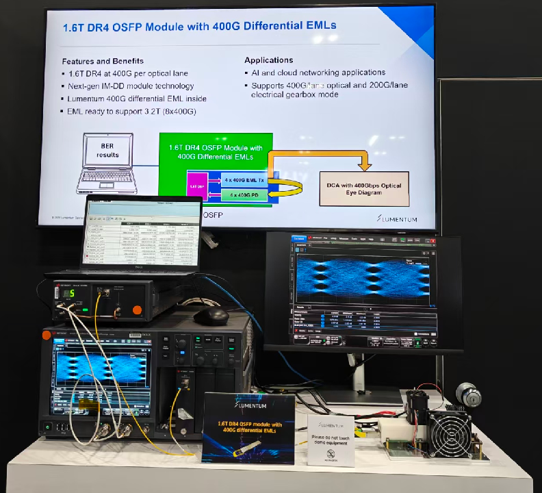 Рис. 6. Демонстрация LUMENTUM 1600G OSFP-DR4 с использованием одноволнового 400G PAM4 EML