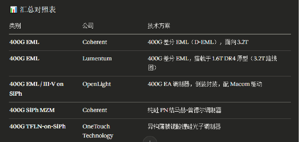 Рис. 7. OFC 2026. Чип модуляции 400G с одной волной. Справочная таблица